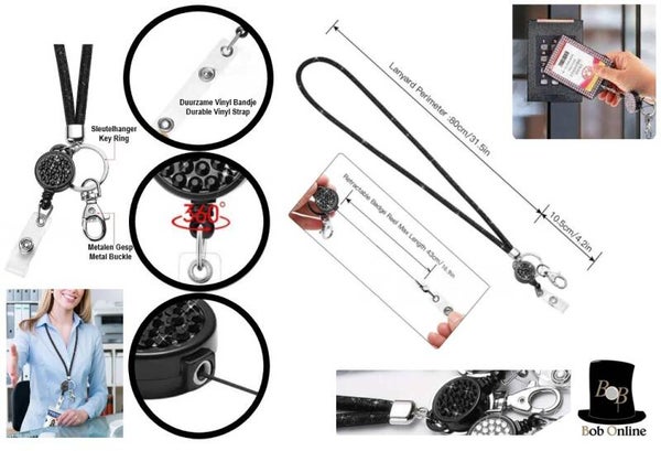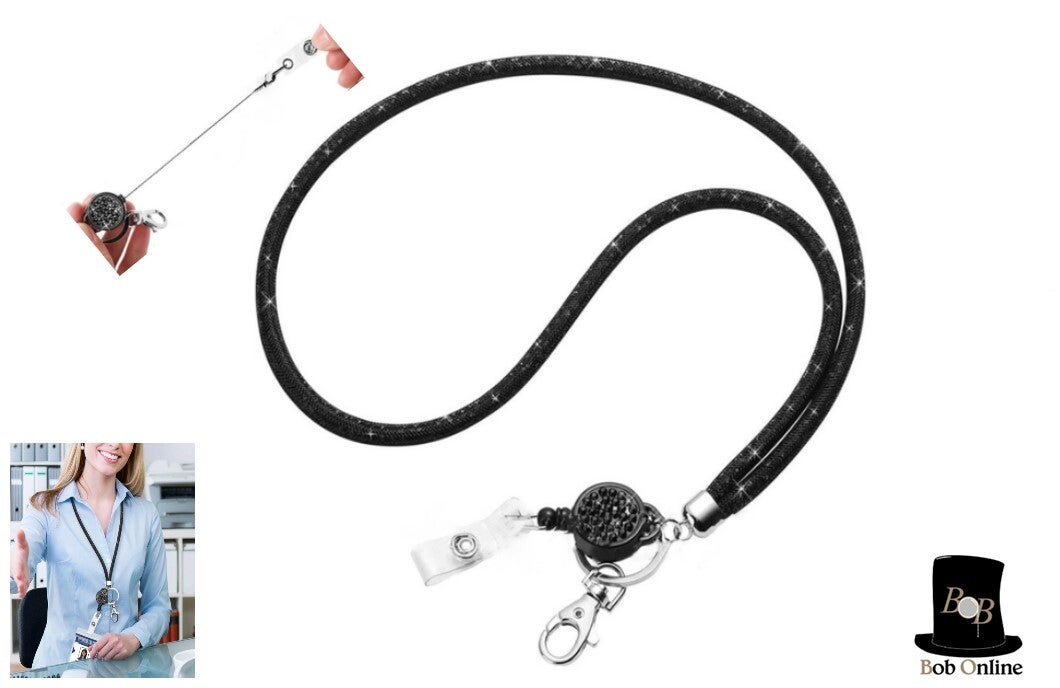Bob Online ™ - 1 Stuk – Zwart – Strass Uittrekbare Lanyard