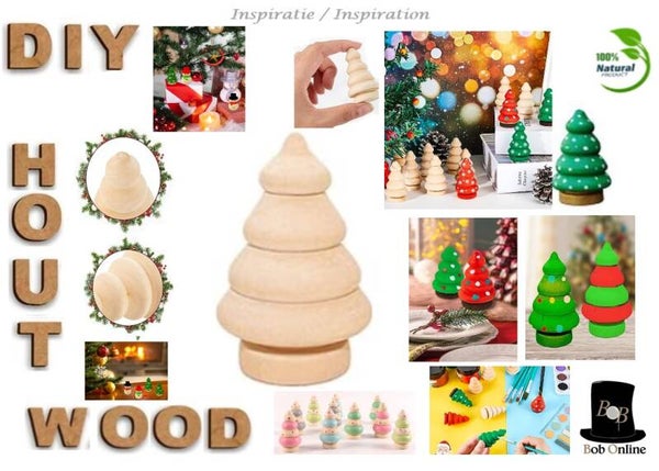 BOB ONLINE ™ - 4 Stuks – Houten Kleur – Houten Kerstboom Ornament