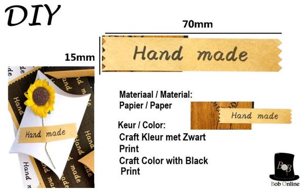 Looking for stickers to decorate your scrapbooks, journals, diaries and DIY cards? Look no further! Our ‘Hand made’ Paper Stickers with craft color background and black color print are exactly what you need. With dimensions of (L) 70 mm x (W) 15 mm they are perfect for your creative projects. These self-adhesive, multifunctional paper stickers can be used in various ways. What are you waiting for? Add some flair to your creations with these awesome stickers from Bob Online™!