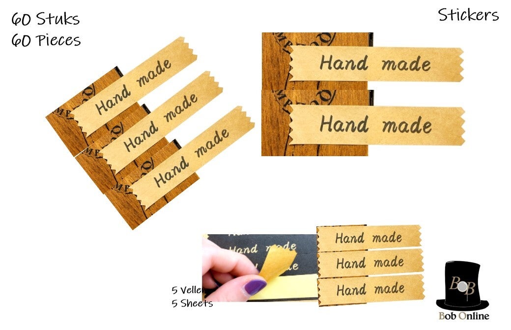 Bob Online™ - 60 Stuks (5 Vellen) – Craft Kleur Achtergrond - ‘Hand made’ Papier Stickers