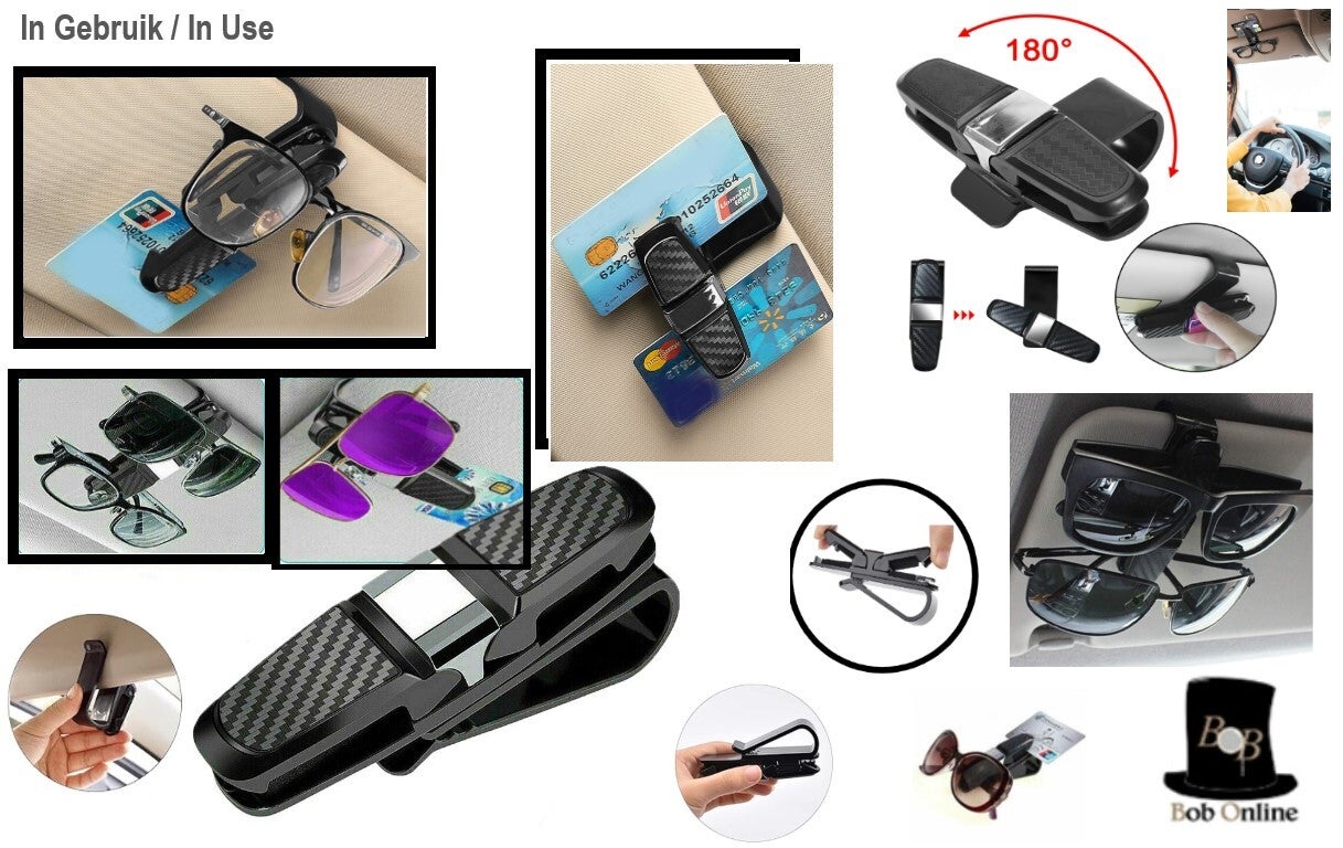 Bob Online™ - 1 Stuk – Zwart - Universal Autozonneklep-brillenhouder - ABS-Kunststof Volledig Recyclebaar