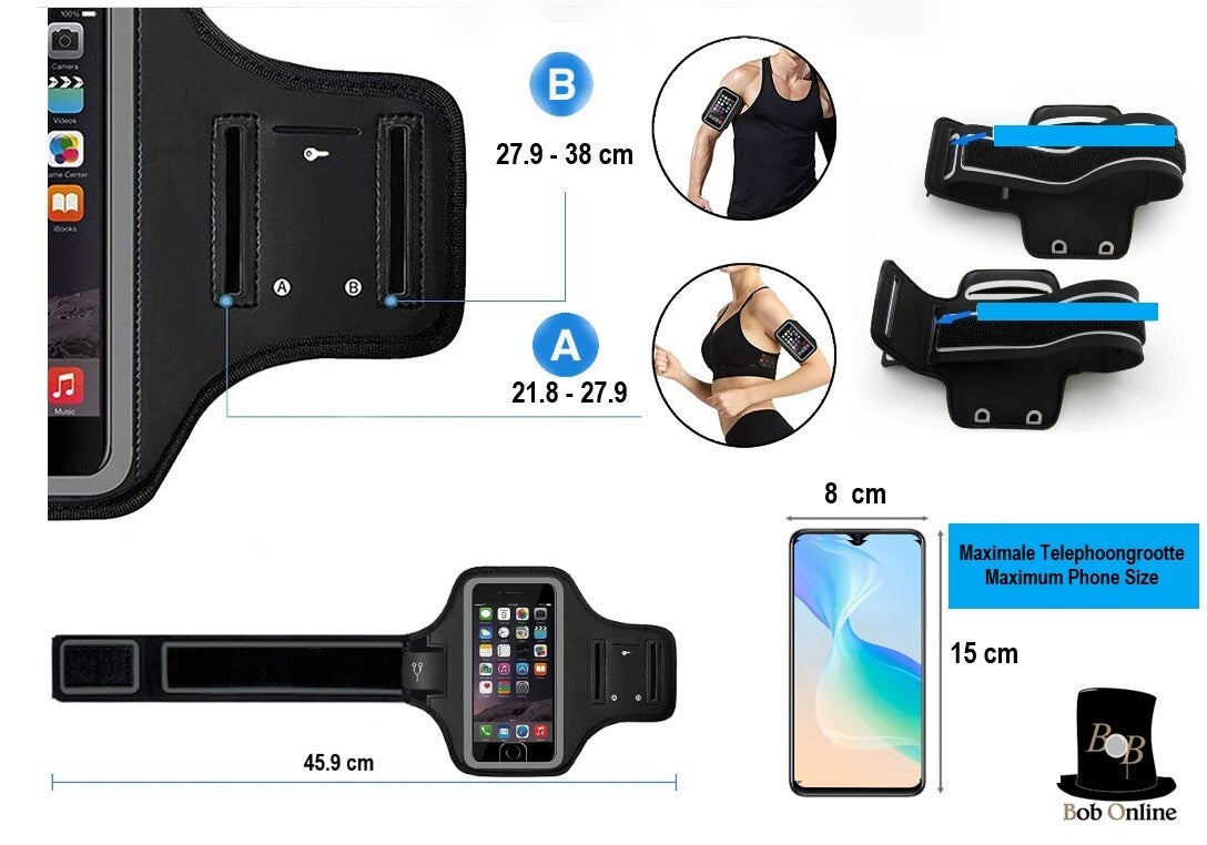 Ben je op zoek naar een praktische en comfortabele sportarmband voor tijdens het hardlopen, fietsen of wandelen? Ontdek nu de Bob Online™ universele sportarmband! Deze afneembare en verstelbare armband is waterdicht en heeft een touchscreen telefoonhouder, geschikt voor iPhone, Samsung, Xiaomi en Huawei. Met zijn fluorescerende rand blijf je ook in het donker goed zichtbaar. Waar wacht je nog op? Bestel nu en geniet van het comfort en gemak tijdens je sportactiviteiten!