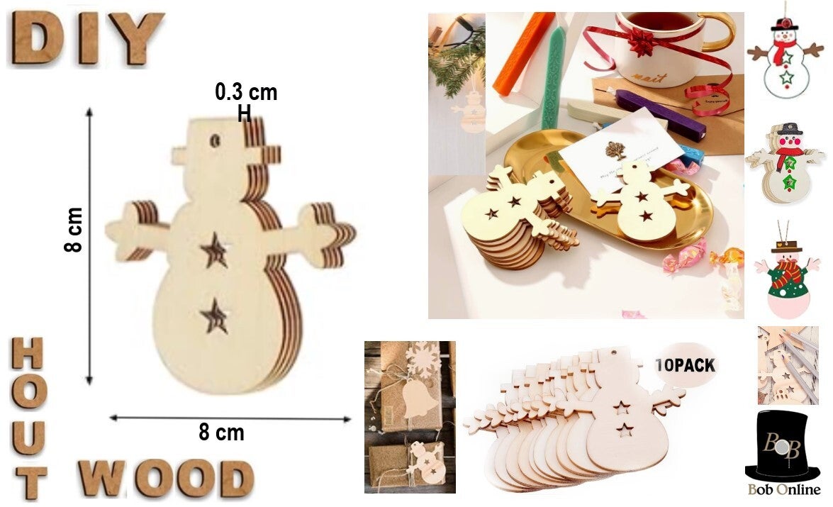 - Productnaam: Bob Online™ - 10 Stuks – Houten Sneeuwpop Vormen - Sneeuwpop Houten Schijven – DIY Kerst Sneeuwpop