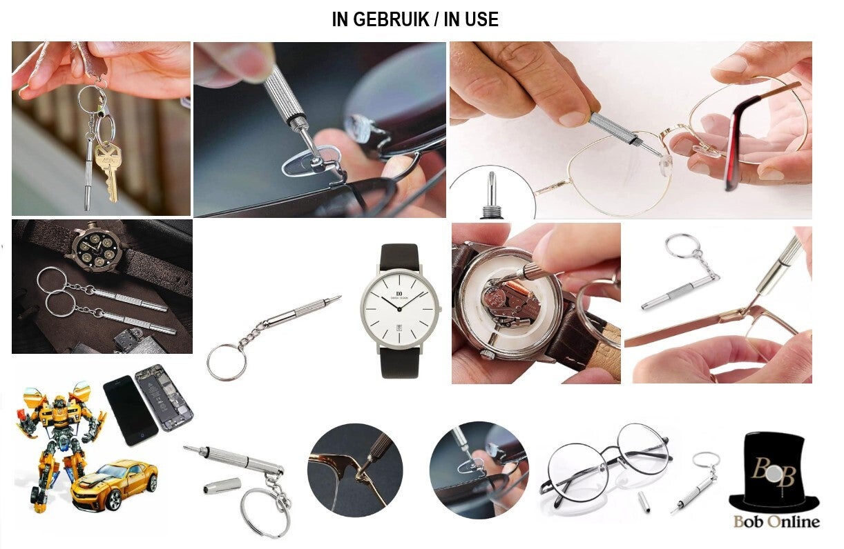 Ben jij ook altijd aan het zoeken naar een bril schroevendraaier wanneer je hem nodig hebt? Zoek niet langer! De 3-in-1 Bril Schroevendraaier Sleutelhanger van Bob Online™ is compact, handig én altijd bij de hand dankzij de sleutelhanger. Dit Universele Brillen Gereedschap is een must-have voor brildragers. Zo ben je altijd voorbereid op onverwachte schroefproblemen. Weg met de frustratie, dit is jouw juiste product!