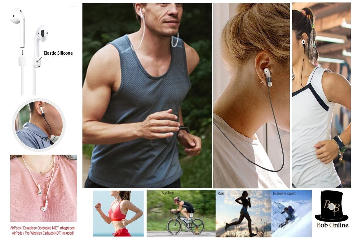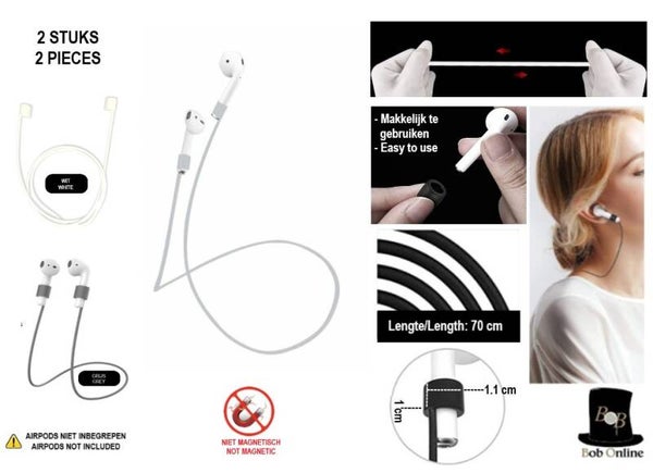 Bob Online 2 stuks witte oordopje silicone lanyards niet magnetisch - 2 pieces white earbud lanyards silicone