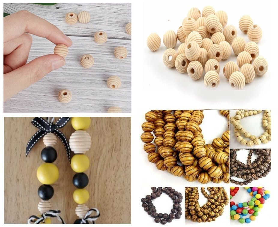 Met deze natuurlijke houten kralen met een ribbeltje kun je een ketting, armband, oorbellen en andere sieraden maken, kinderambachten en andere knutselprojecten en andere DIY / doe-het-zelf projecten maken.