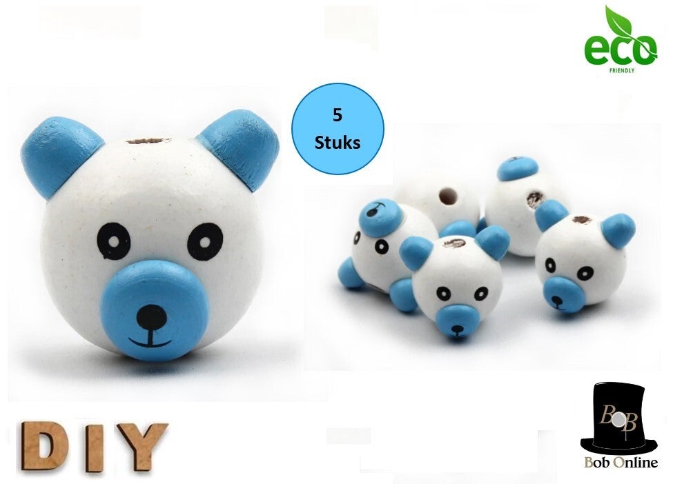 Blauw 3D Beer Houten Kralen – 5 Stuks