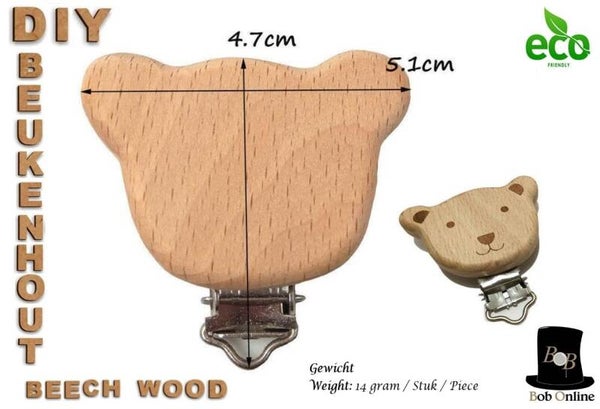 4 Stuks - Houten Speenkoord/Wagenspanner Clip Beer