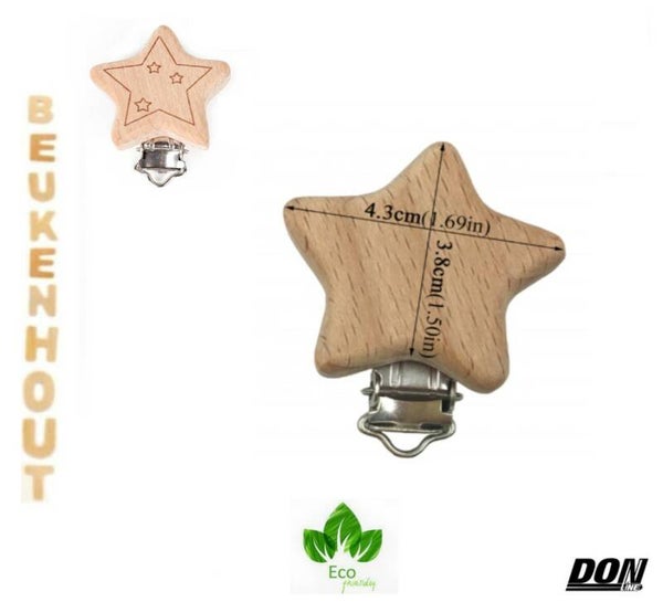 4 Stuks - Houten Speenkoord/Wagenspanner Clip Ster