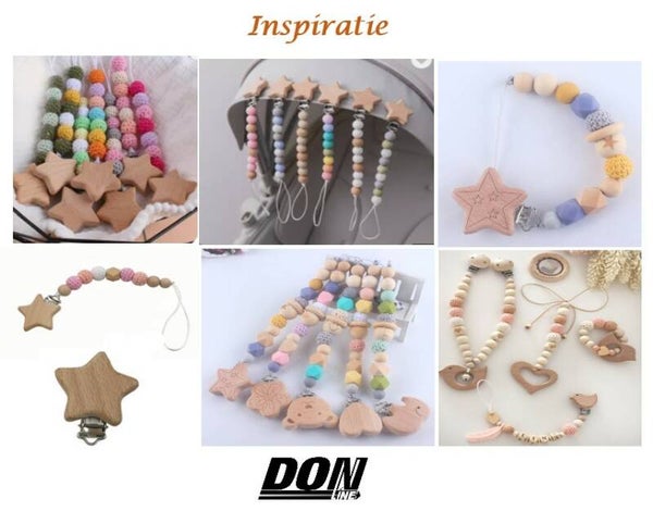 Deze schatige houten fopseenklemmen zijn gemaakt van hoogwaardig natuurlijke Beukenhout, roestvrij metaal, smaakloos en milieuvriendelijk. Ze zijn makkelijk te bevestigen aan de bijtring, speeltjes en andere babyaccessoires of kleding, spoegdoekje, kinderwagen en autogordels.