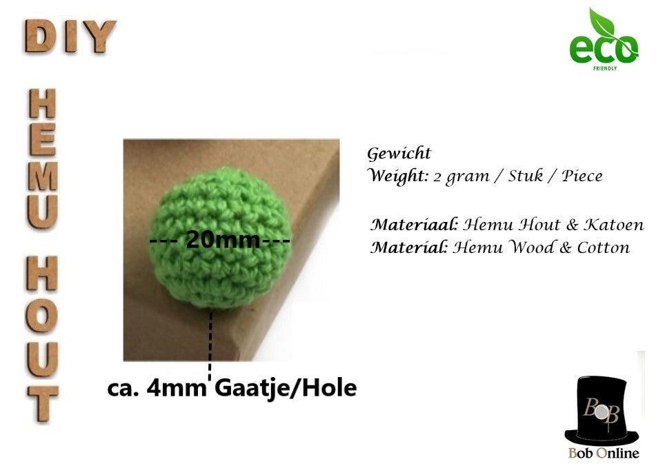 10 Stuks - Groen Ronde Gehaakte DIY Houten Kralen 20mm met 4mm gatje