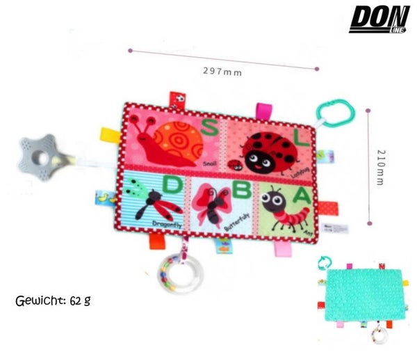 SCHATIGE ONTWERP: deze rustgevende sensorische deken heeft een haak, je kunt hem in een babyschommel/wieg/kinderwagen enz. hangen, zodat je hem altijd en overal kunt meenemen. Kleurrijk cartoonpatronen op de deken, die je baby helpen om eenvoudige patronen te herkennen en vroege cognitieve vaardigheden op te bouwen.