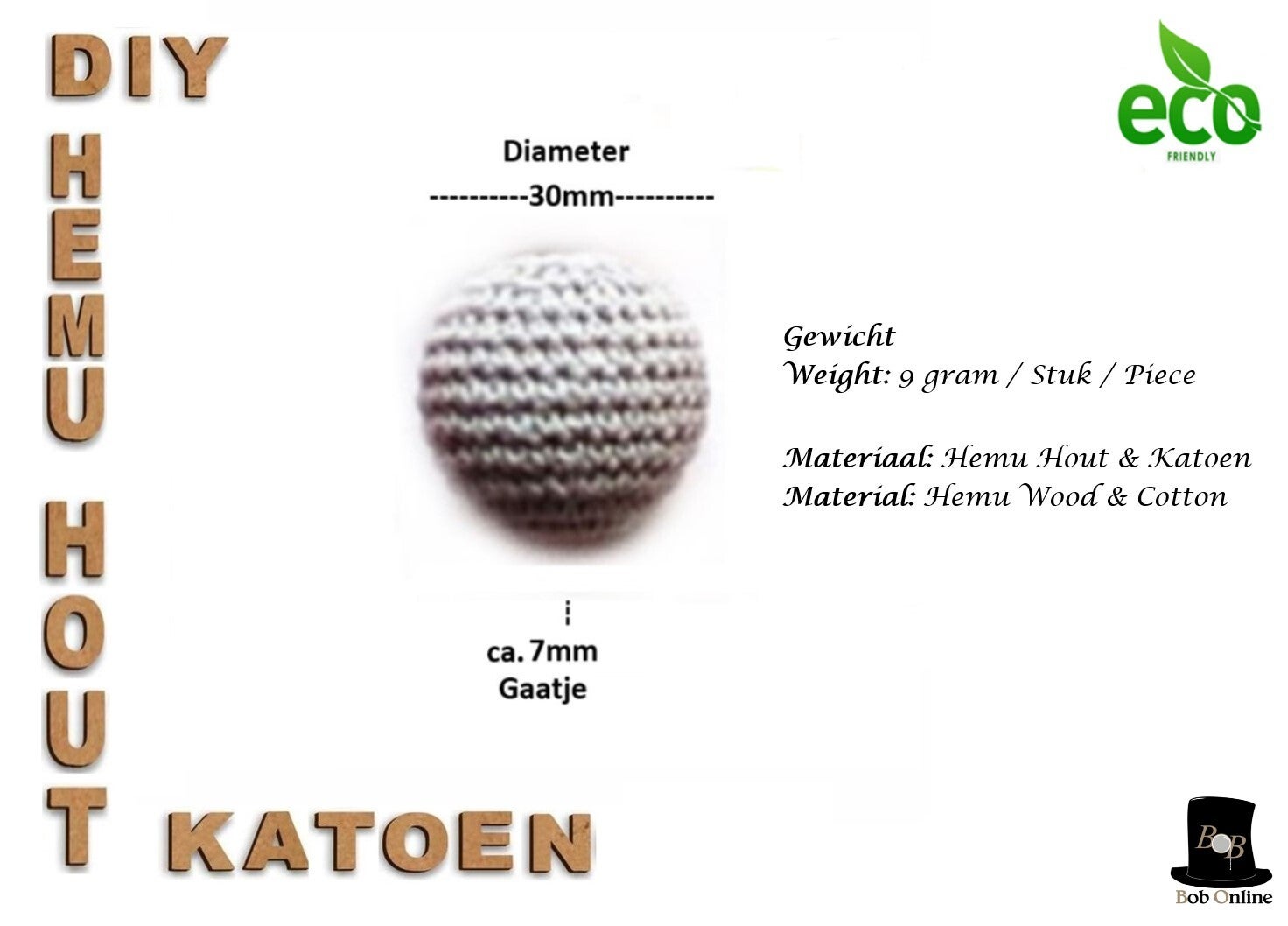 6 Stuks Mix - Gehaakte Houten Kralen 30mm - Blauw/Grijs/Gebroken Wit