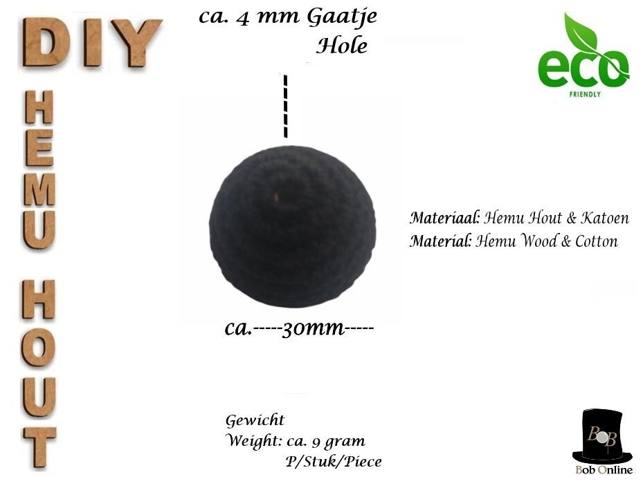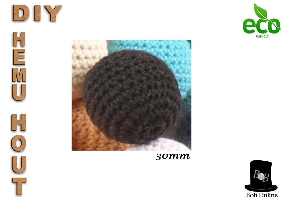 6 Stuks - 30mm Ronde Gehaakte Houten Kralen met 7mm Gaatje – Zwart