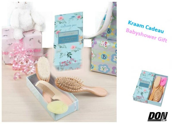 Elegante geschenkdoos maakt deze babyhaarborstelsetje het ultieme kraamcadeau.