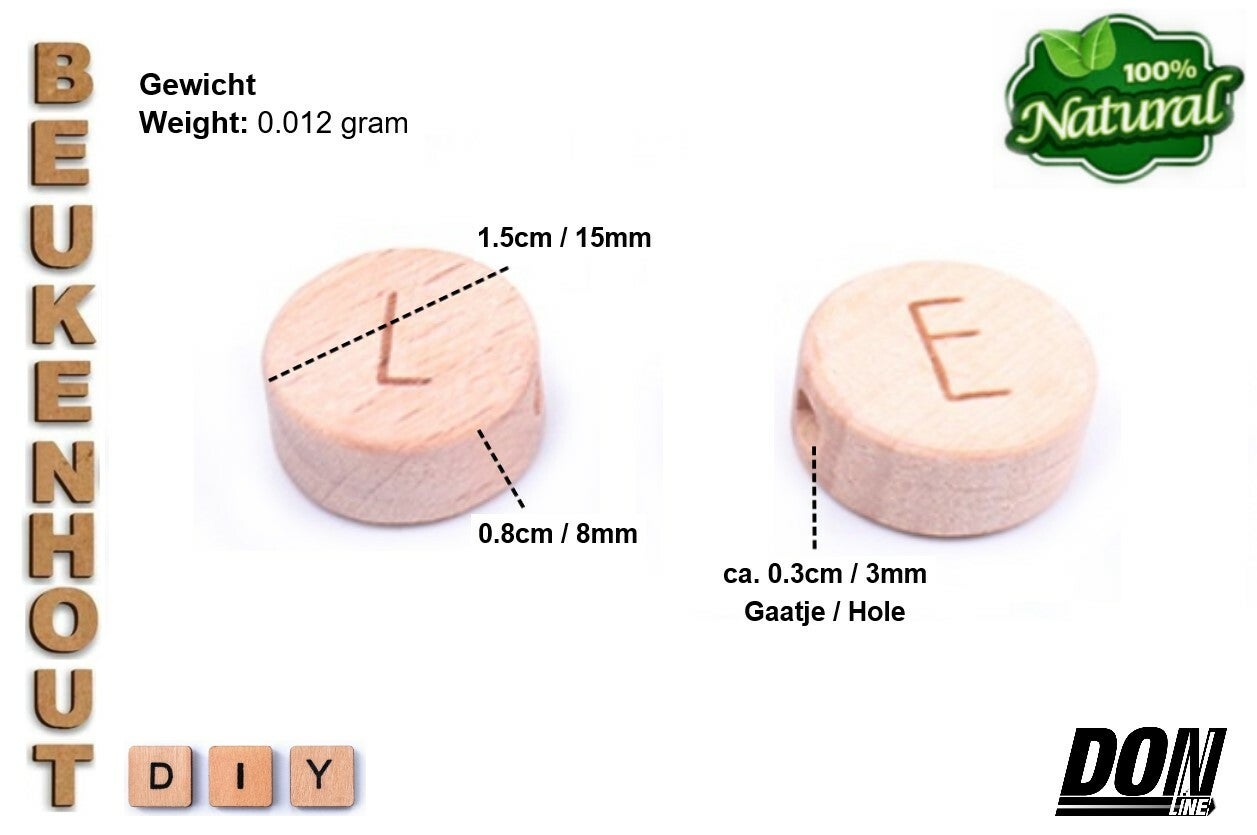 5 Setjes - 15mm Beukenhout Ronde Schijf Laser gegraveerd Letter Kralen ‘LOVE’
