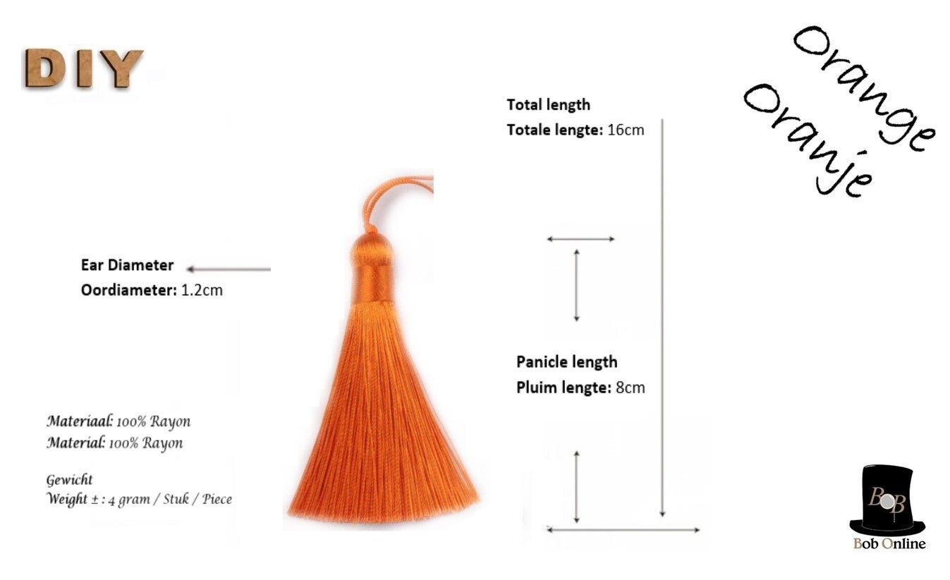 Ze zijn zijdezachtig en voelen zacht aan. In je pakket ontvang je 4 prachtige Oranje kwastjes van hoge kwaliteit, 8 cm lang met een lus om gemakkelijk aan je creatieve project te bevestigen. De gehele lengte van de tassel inclusief de lus meet 16