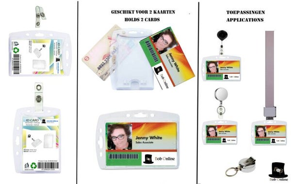 Bob Online ™ - 2 Stuks– Horizontale + Verticale ID-Badgehouder Helder Acryl + 2 Stuks- Bretel Bandjes