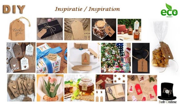 Bob Online ™ - 20 Stuks - Kraftpapier Etiketten – 5.8 x 2.8 cm – Mini