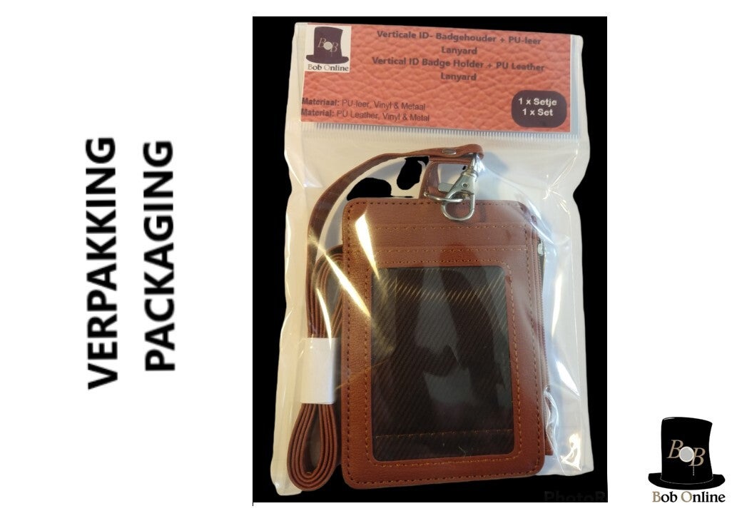 Bob Online ™ - 1 Stuk – Bruin - Verticale ID- Badgehouder met PU-leer Lanyard – ID- Badgehouder met ritssluiting