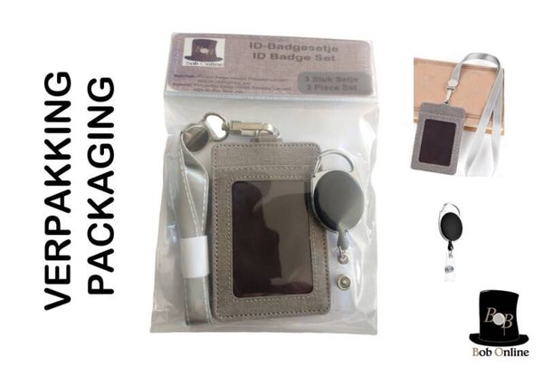 Bob Online ™ - Setje – Lichtgrijs - 1 x PU-leer ID-Badgehouder + 1 x Lanyard (Grijs) + 1 x D-Clip ID Jojo