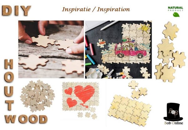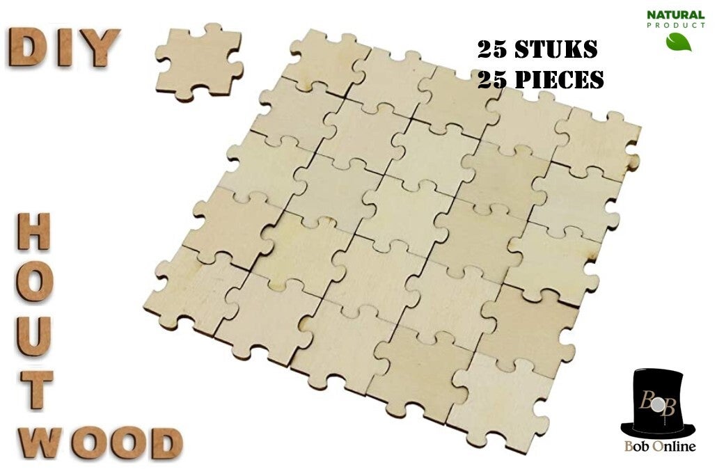 Bob Online ™ - 25 Stuks - DIY Houten Puzzel Stukjes – Onbewerkte Houten Puzzel Stukjes