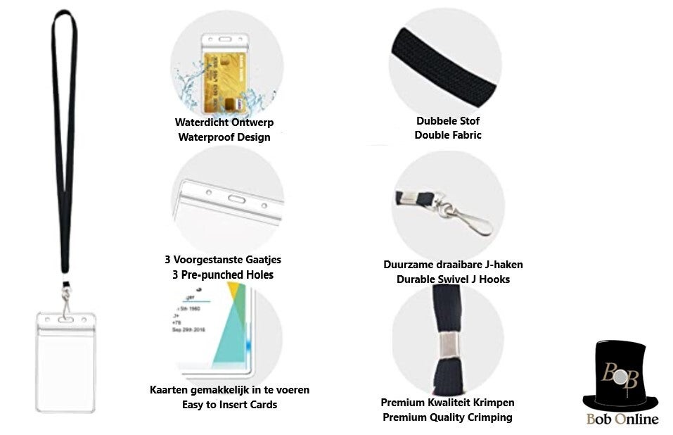 Bob Online ™ - 5 Stuks – Verticaal PVC ID Badgehouders + 5 Stuks Lanyards