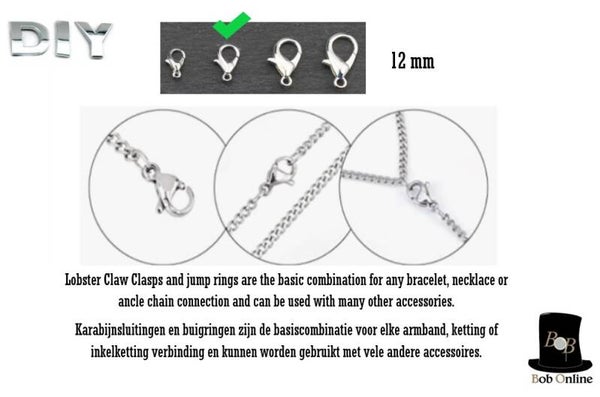 Karabijnsluitingen en buigringen zijn de basiscombinatie voor elke armband, ketting of inkelketting verbinding en kunnen worden gebruikt met vele andere accessoires.