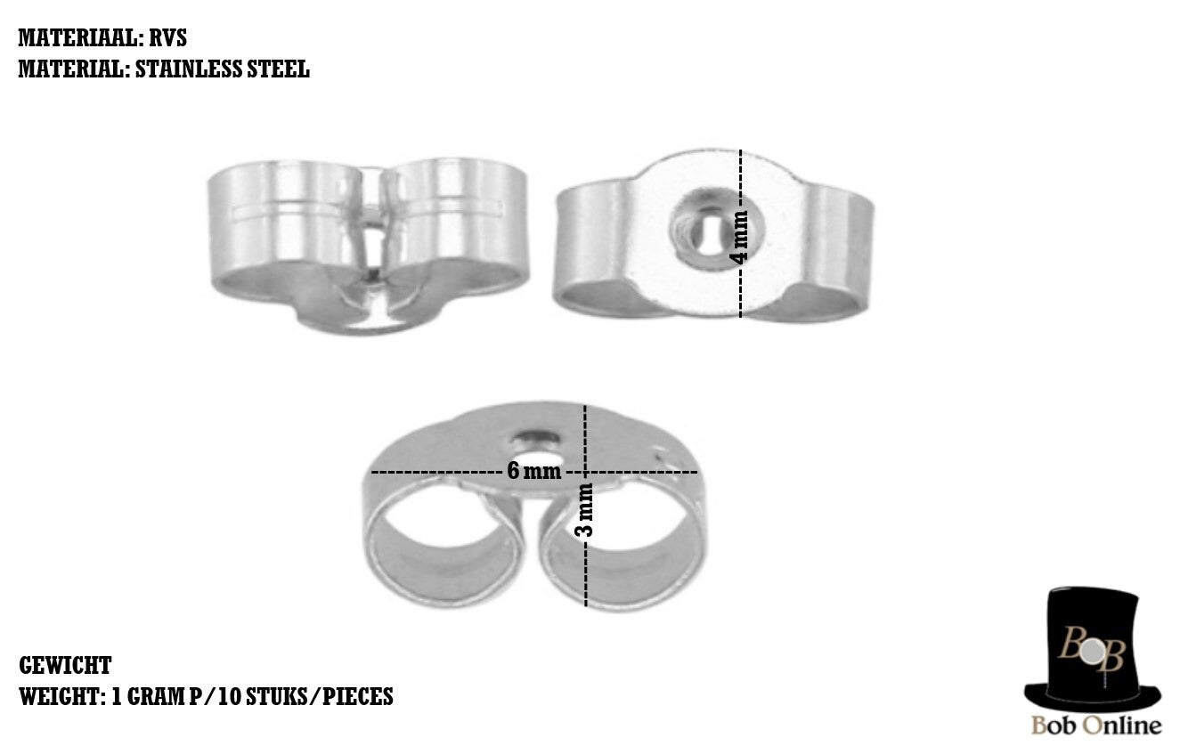 Bob Online ™ - 10 Stuks – RVS – Zilverkleur Oorbel Vlinders – Oorbel Stoppers