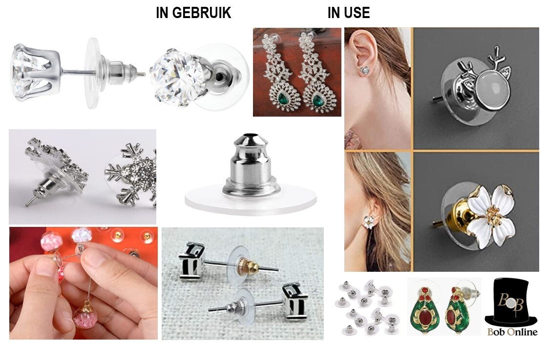Deze Oorbelstoppers van Bob Online ™, zijn gemaakt van zachte siliconen, loatexvrij en hypo-allergisch. Ze kunnen worden gebruikt met vishaakoorbellen, hangende oorbellen en oorknopjes en werken goed met zware oorbellen.